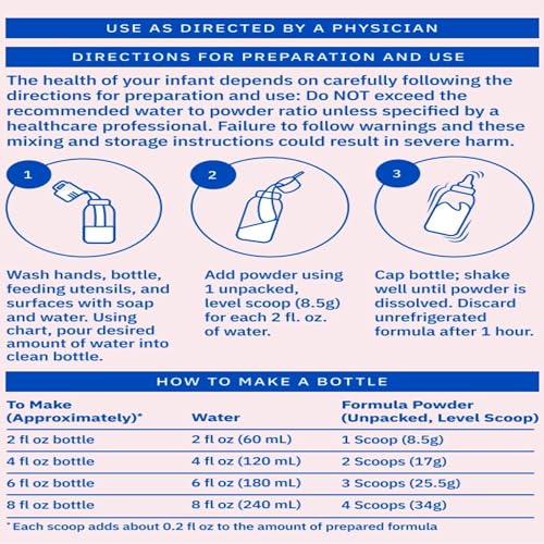 EASY TO PREPARE THE INFANT FORMULA: Add 1 unpacked, level scoop of Baby’s Only Formula powder for each 2 fl oz of water. Place the cap on your bottle and shake well until the powder is dissolved.