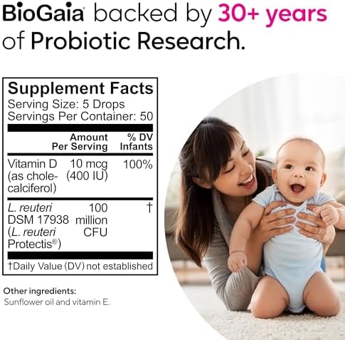 NATURALLY FOUND IN BREAST MILK: Unlike drugs and gripe water, BioGaia Baby with Vitamin D contains probiotics naturally found in breast milk that ease babies’ digestive discomfort and promote a happy tummy.*