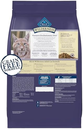 Blue Buffalo Wilderness High-Protein Natural Cat Food Chicken Recipe is a great choice to feed your cat’s wild side. This protein-rich dry cat food for adult cats is PACKED WITH REAL CHICKEN that is sure to satisfy your cat’s natural cravings. Like all Blue Buffalo cat food, BLUE Wilderness natural cat food is formulated without any chicken (or poultry) by-product meals. It is also free of corn, wheat, soy, artificial flavors, and preservatives. You can feel great knowing Blue Buffalo is helping your cat thrive with a protein-packed diet.
