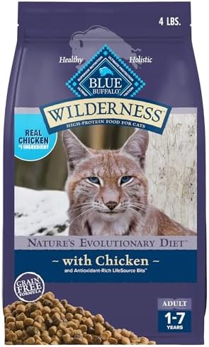 Contains: One (1) 4-lb bag of BLUE High-Protein and Grain-Free Wilderness Natural Adult Dry Cat Food, Chicken Recipe