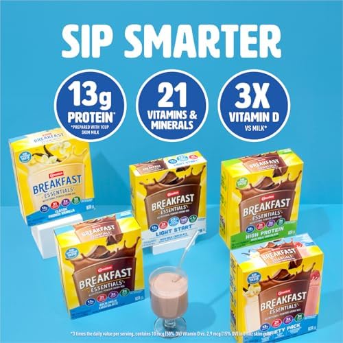 POWDER DRINK MIX: Mix Carnation Breakfast Essentials Powder Drink Mix with skim milk or mix in a smoothie for a tasty, easy snack or breakfast drink & start the day right, with protein & other nutrients.