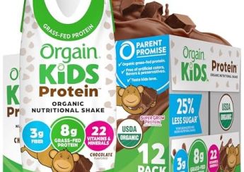 Orgain Organic Kids Protein Nutritional Shake, Chocolate – 8g of Protein, 22 Vitamins & Minerals, Fruits & Vegetables, Gluten Free, Soy Free, Non-GMO, 8.25 Fl Oz (Pack of 12)