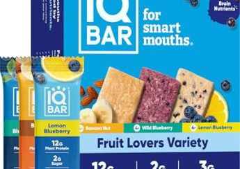 IQBAR Brain and Body Plant Protein Bars – Fruit Lovers Variety – 12-Count Low Carb – Gluten Free, High Fiber, Vegan Snacks – Low Sugar Meal Replacement