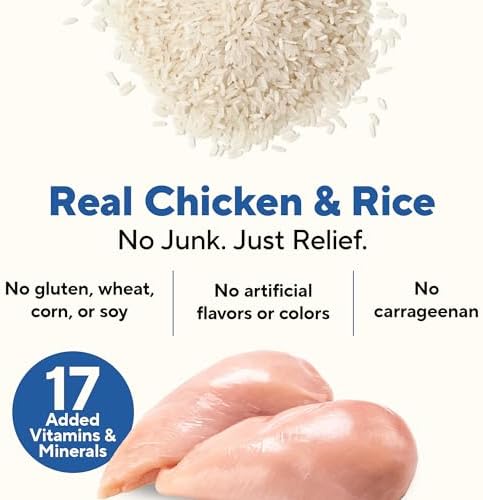 Simple chicken and rice recipe is formulated to help calm your pup’s tummy during times of transition; also ideal for the dog prone to stomach upset. Great digestive health dog food.