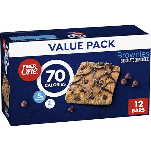 Say yes to great taste and no to compromising. Enjoy an indulgent moment without the guilt with Fiber One 70 Calorie Chocolate Chip Cookie Brownies. Every brownie brings you a delicious chocolate chip cookie taste, with chocolatey chips and drizzle. Each ready to eat treat has 70 calories, 2g of sugar, and 5g net carbs (5g net carbs = 17g total carbs – 7g fiber – 3g sugar alcohol – 2g allulose). It’s a fiber snack you can feel good about eating as part of a balanced diet. A fiber brownie contains 27% daily value of fiber (2.5g total fat per brownie). Diets high in fiber can help keep your digestive system on track. Choose Fiber One Brownies as part of breakfast on the go. Make it a sweet addition to a lunch box. Keep some at work for any time you crave a quick and easy office snack. Fiber One snacks bring you so many tasty possibilities. Contains one big cardboard box of Fiber One 70 Calorie Brownies, Chocolate Chip Cookie, 2g Sugar, Value Pack, 12 Ct, 10.6 oz. Perfect for instant snacking.