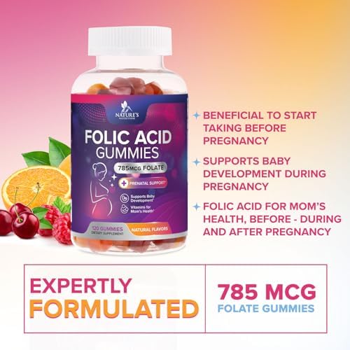 FOLIC ACID GUMMIES 785MCG: Nature’s Nutrition Folic Acid Gummies have 785 mcg in each gummy; you will love our delicious cherry, orange and grape gummies
