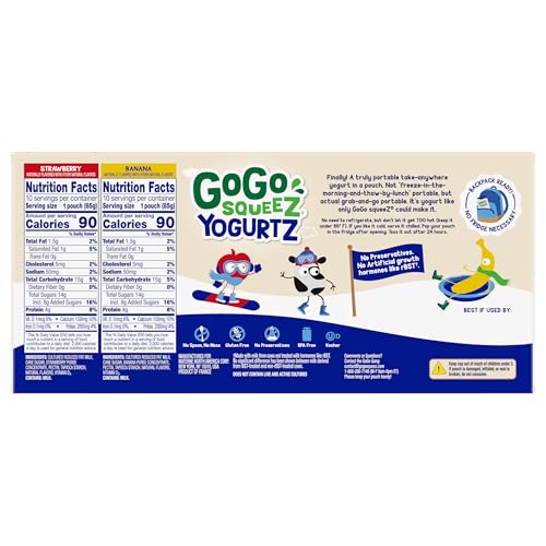 GoGo squeeZ yogurtZ fruit and yogurt snacks provide the nutrition kids need to help them explore, learn, play and just be kids; Adults can snack on these yogurt pouches too, keep a pouch in the car, in a bag or at your desk for tasty snack on the go