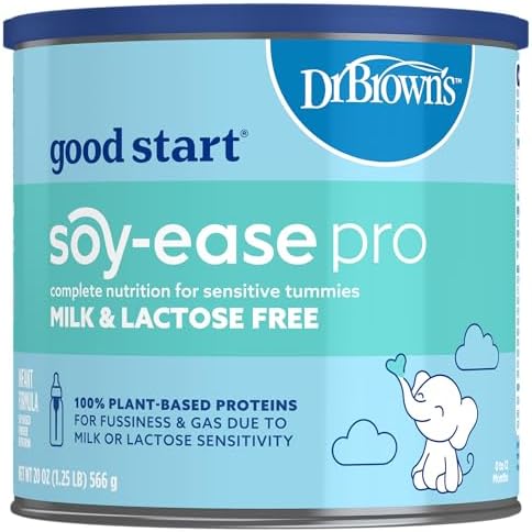 GROWTH AND DEVELOPMENT: Made with 100% plant-based soy proteins, Good Start | Dr. Brown’s Soy-ease Pro infant formula provides complete nutrition for babies with fussiness and gas caused by sensitivity to milk-based formulas. This baby formula is gentle on tiny tummies with milk or lactose sensitivity. Soy-ease Pro is for infants aged 0-12 months.
