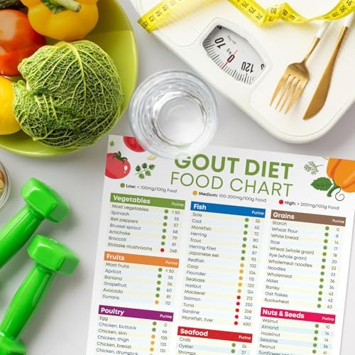 This handy guide highlights foods low in purines, which can reduce the risk of flare-ups. It includes a clear breakdown of foods to enjoy, limit, and avoid, making it an essential tool for those with gout. This poster is durable and easy to read, perfect for the kitchen. Start making better food choices today with this practical resource – a must-have for anyone looking to prevent painful gout symptoms