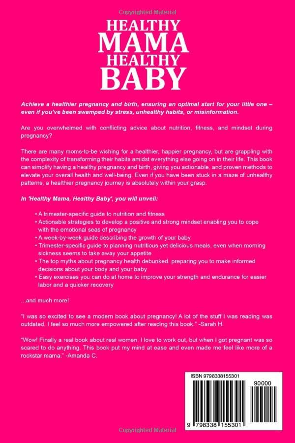 A trimester-specific guide to nutrition and fitnessActionable strategies to develop a positive and strong mindset enabling you to cope with the emotional seas of pregnancySecrets to achieving a fit pregnancy that may be more simple than you thinkA week-by-week guide describing the growth of your babyTransformative ways to manage pregnancy-related stress and anxietiesTrimester-specific guide to planning nutritious yet delicious meals, even when morning sickness seems to take away your appetiteThe top myths about pregnancy health debunked, preparing you to make informed decisions about your body and your babyEasy exercises you can do at home to improve your strength and endurance for a more manageable labor and a quicker recoveryWays to improve sleep during your pregnancy – because every mama-to-be needs her beauty sleep…and much more!