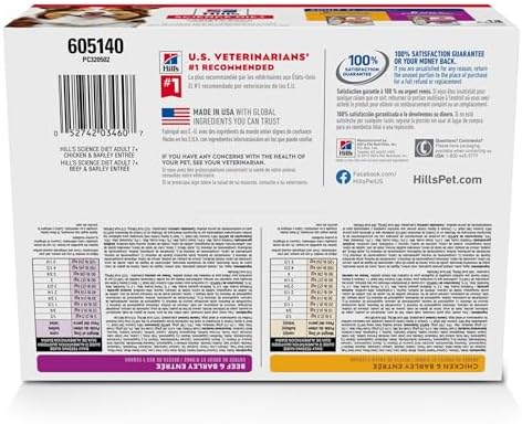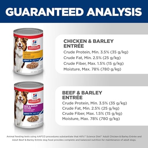 Indulge your dog in tail-wagging delight with the two tasty flavors in this Science Diet variety pack. Both flavors of this delicious dog food have precise nutrition to support the energy and activity level of adult dogs age 7+. Made in the USA with global ingredients you can trust, these foods also use clinically proven antioxidants for a healthy immune system. Open up a can and serve either one of these mouthwatering entrées as a balanced meal, or try on top of Science Diet dry dog food.