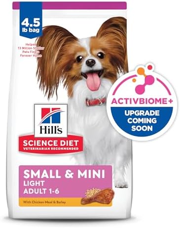 Little dogs can still have a big appetite, so for small breeds that are less active, there’s Hill’s Science Diet Small & Mini Light adult dog food. This dog food made with natural ingredients is tailored nutrition for less active adult small & mini dogs who require a low-calorie food to help maintain a healthy weight & lifestyle. Specially made with small size kibble, this light food for small dogs contains L-carnitine to promote healthy weight, joint movement and heart function. The high-quality protein supports muscle maintenance, while natural fibers keep your little dog full between meals. This premium dog food uses omega-6s and vitamin E to nourish your small dog’s skin and coat, while a special antioxidant blend promotes a strong immunity for lifelong health. There’s more to love with the new look of Science Diet. Some of our products also have new names, new kibble shapes & new formulas.