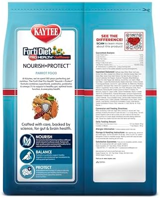 ENHANCED BY NUTRITIONAL SCIENCE. The Kaytee Forti-Diet Pro Health+Safflower Parrot Food is backed by the latest nutritional science to tailor a diet for your parrot.