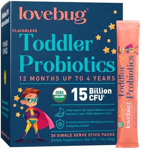 DIGESTIVE UPSET, DIARRHEA & CONSTIPATION. Toddlers & young children have delicate gut microbiomes that require specific strains of probiotics to restore balance. LoveBug Toddler & Kids Probiotics uses 8 clinically tested strains of probiotics that have been studied for toddlers and children.