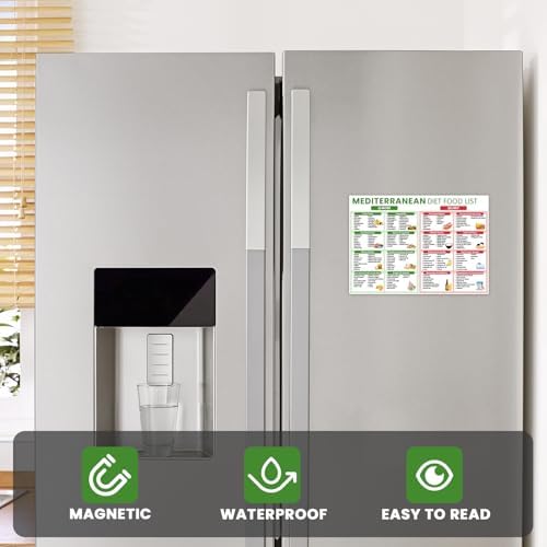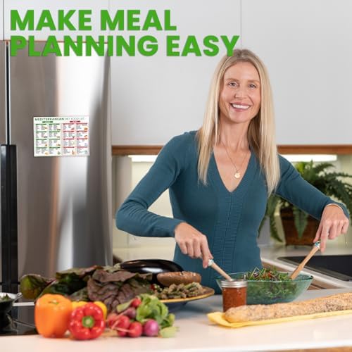 Durable Magnetic Backing: Our Mediterranean food chart effortlessly sticks to refrigerators, whiteboards, or metal cabinets—no messy adhesives. Organize your diet plan with reusable convenience.