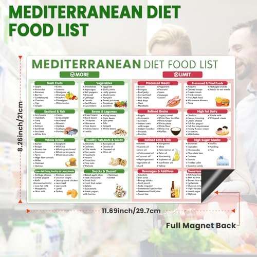 Mediterranean Food List Chart – A4 Size Soft Magnetic Diet Guide for Healthy Eating & Weight Loss | Perfect for Kitchen, Fridge, Office