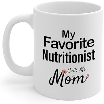 My Favorite Nutritionist Calls Me Mom Coffee Mug: Start your day with a cup of inspiration with this 11oz white ceramic coffee mug featuring the quote My Favorite Nutritionist Calls Me Mom, designed especially for Nutritionist. Crafted for both style and function, this durable ceramic mug showcases a glossy finish and a comfortable C-handle, making every sip a pleasure. Built for daily use, it is lead and BPA-free, ensuring a safe drinking experience. Whether you prefer coffee, tea, or hot chocolate, the advanced printing technology brings vibrant colors to life, making it a standout addition to any kitchen. Designed for convenience, this mug is microwave-safe for easy reheating and dishwasher-safe for effortless cleaning. Perfect for men, women, friends, and family, this mug makes a thoughtful gift for birthdays, Christmas, Valentine’s Day, Mother’s Day, Father’s Day, and more.