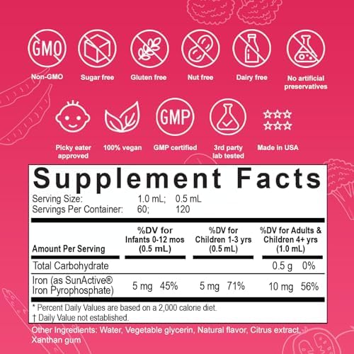 Clean, Parent-Approved Formula – These baby iron drops are 100% vegan, non-GMO, and free from sugar, gluten, dairy, and common allergens. Made in the USA in GMP-compliant facilities, it’s a safe, trusted iron supplement for toddlers and kids.
