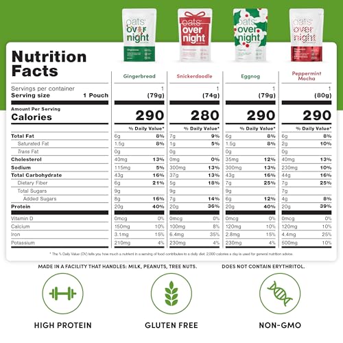 CERTIFIED GLUTEN FREE, KOSHER, NO ERYTHRITOL, NON-GMO – Made with certified gluten free 100% whole grain oats, ginger, cinnamon, coffee, Himalayan pink salt, flaxseed, maple sugar, chia seeds, and premium protein makes Oats Overnight the best tasting oatmeal on the market.