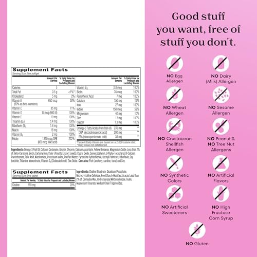 Key nutrients for mom and baby: These prenatal vitamins for women help support nutritional needs recommendations for pregnancy. Such as Iron to help transport oxygen to your baby, and Choline & Folic Acid to support fetal brain and spinal cord development