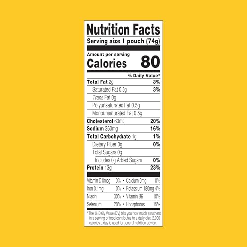 Excellent Source of Protein: Each chicken pouch is packed with 15g of protein and 80 calories per pouch It’s gluten free, soy free and works well with Keto, Paleo, Mediterranean, and Weight Watchers diet plans