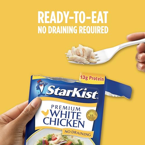 StarKist Premium White Chicken pouches feature fully cooked, tender chicken that is ready to enjoy in all of your favorite recipes. Packed in a convenient flavor fresh pouch, it’s the first pouch of chicken that truly doesn’t require any draining. It’s great for incorporating into your favorite recipes or enjoy it straight out of the pouch. It’s cooked chicken that makes a quick and delicious chicken salad, buffalo chicken, chicken quesadillas and also makes meal prep a breeze. Plus, there’s no can opener needed – Just tear, eat and go! *Packaging may vary
